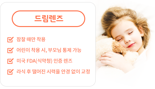 반면 드림렌즈는 수면할 때만 착용하여 일상생활에 부담을 주지 않습니다.